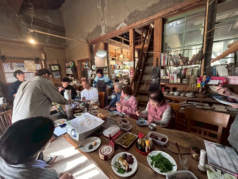 報告会の後は、お料理をいただきながらの懇親会。信級の歴史や暮らしについてのお話を伺い、和気あいあいとした豊かな時間を過ごすことができました🍃